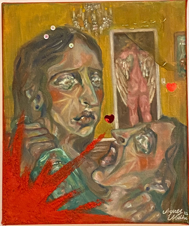 Water mixable oil paint and mixed media on canvas. 25×30 cm.