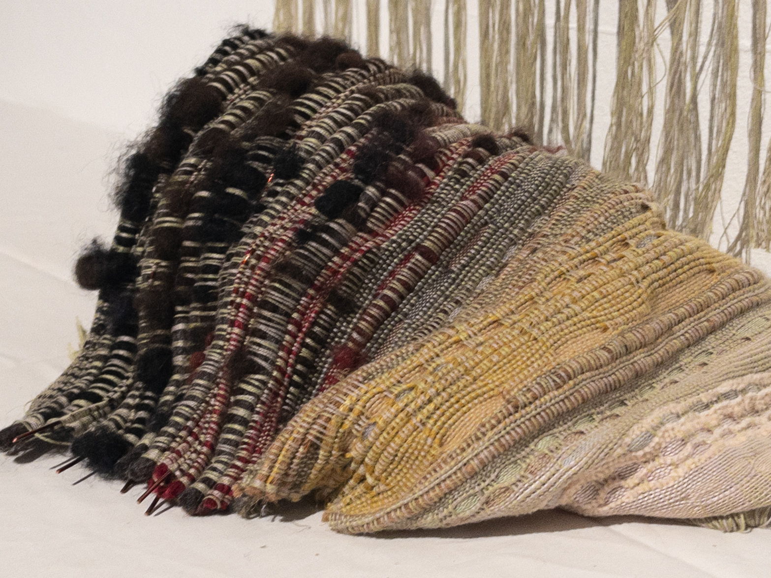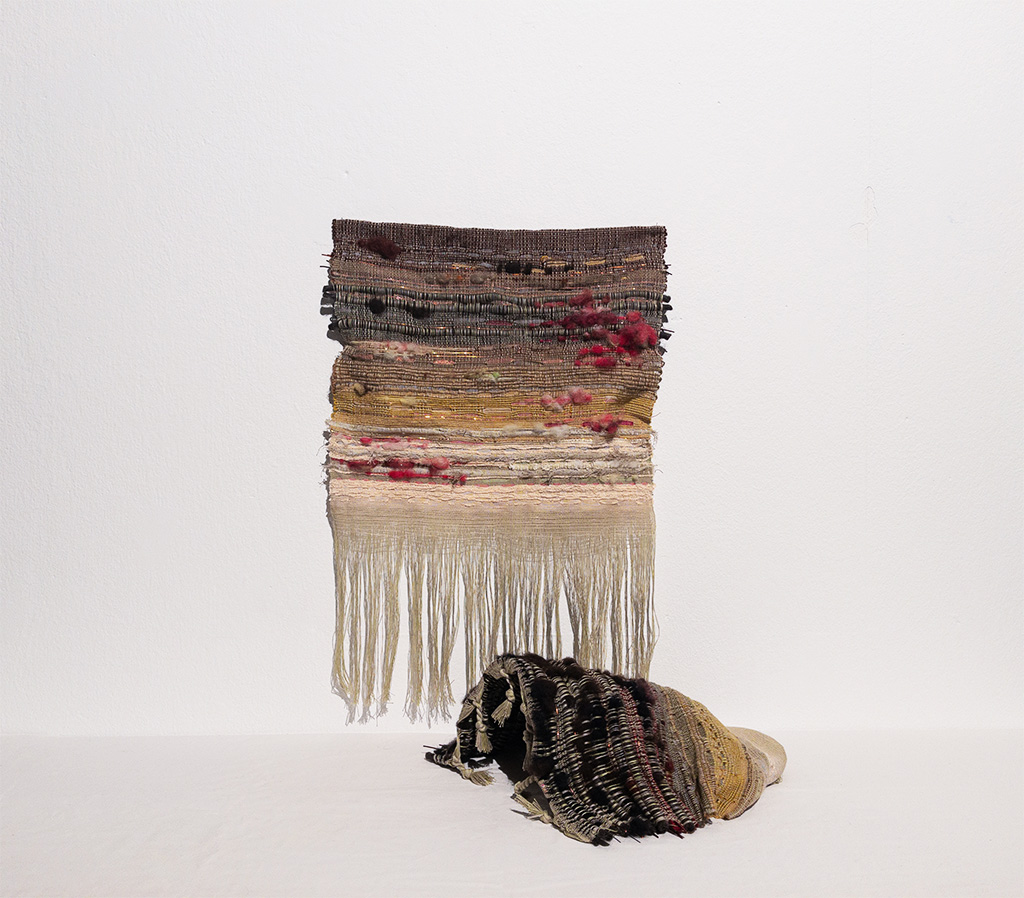 cotton warp, weft in mixed materials such as carded wool, copper thread and jute